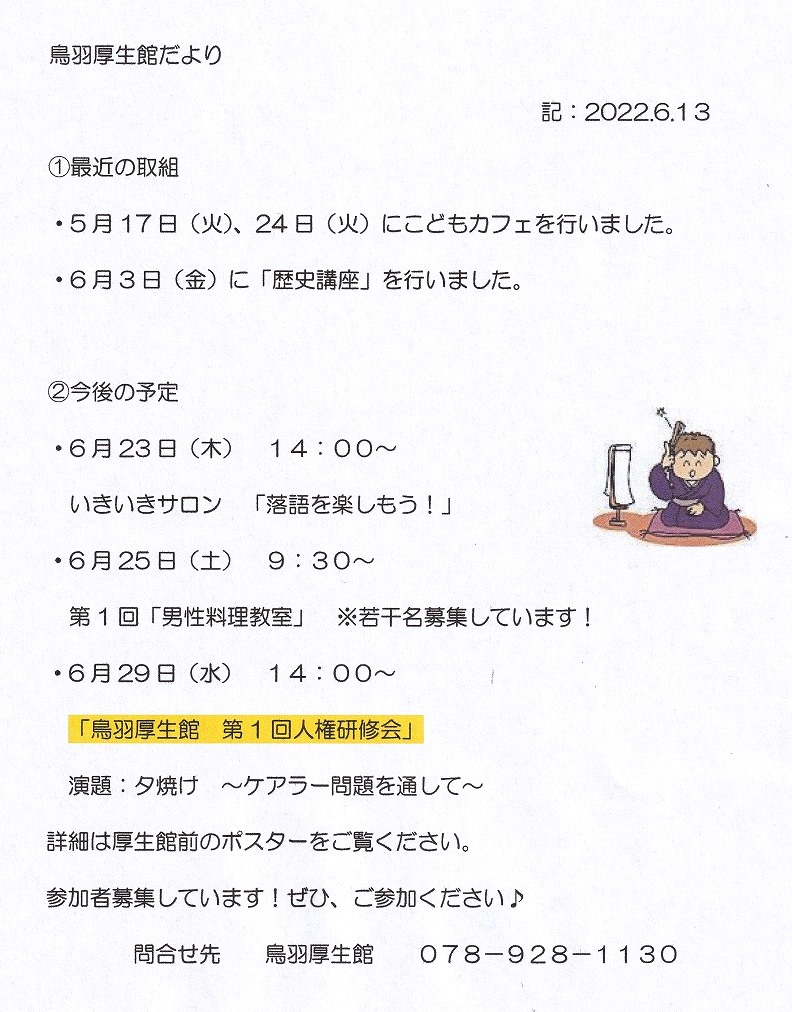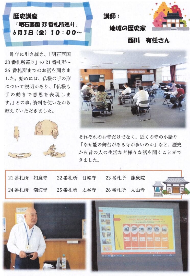 鳥羽厚生館便り 「こどもカフェ」、「歴史講座『明石西国33番札所巡り』」