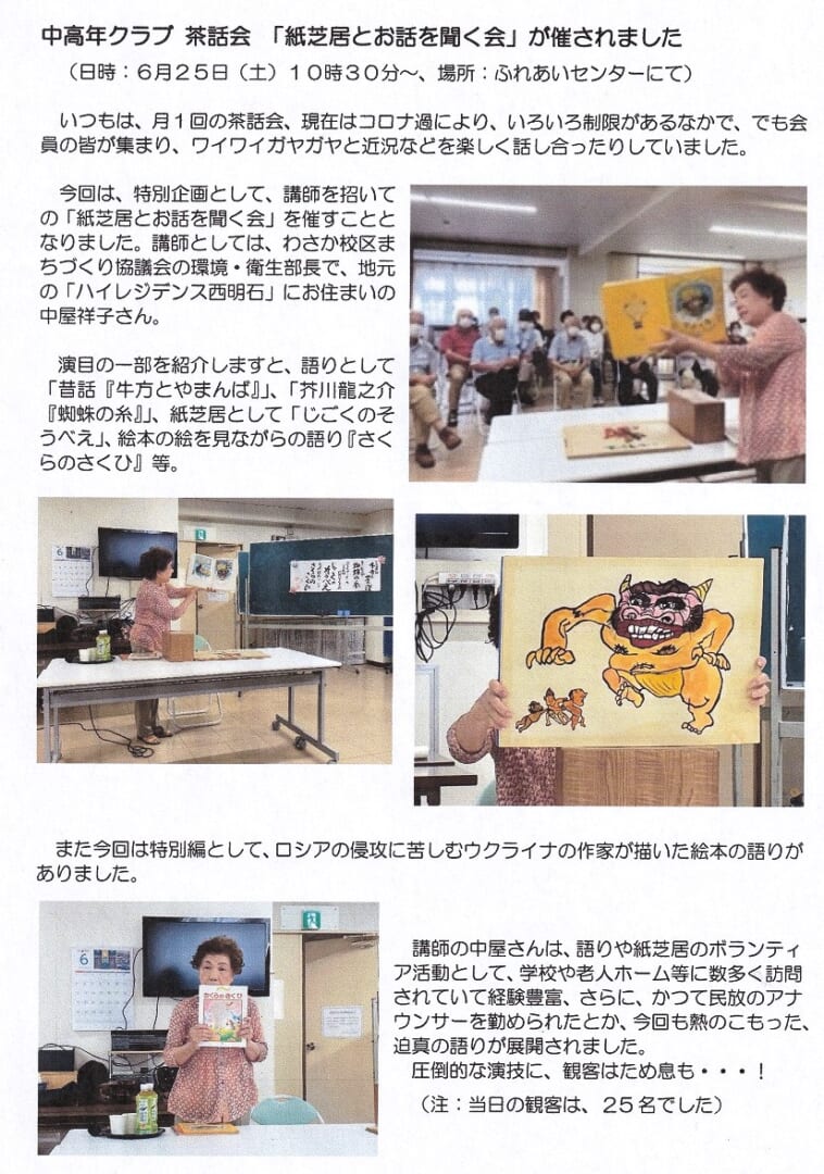 新和坂自治会 高年クラブ 「紙芝居とお話を聞く会」