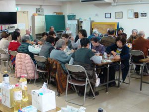 新和坂自治会高年クラブの恒例「新年会」が、1月20日(土)の正午から、シャルマンコーポ明石ふれあいセンターにて催されました。参加者は、男女約半々の計23名。