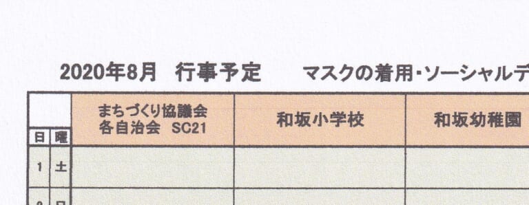 和坂校区まちづくり協議会 関係団体行事日程(8月度)