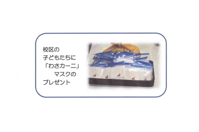 校区の子どもたちに 「わさカーニ」 マスクのプレゼント