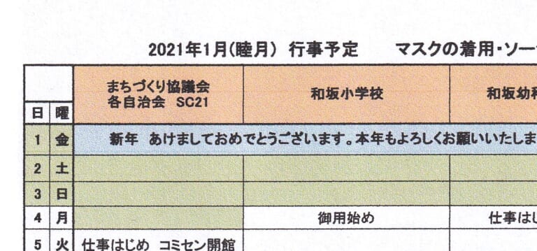和坂校区まちづくり協議会 関係団体行事日程(2021年1月度)