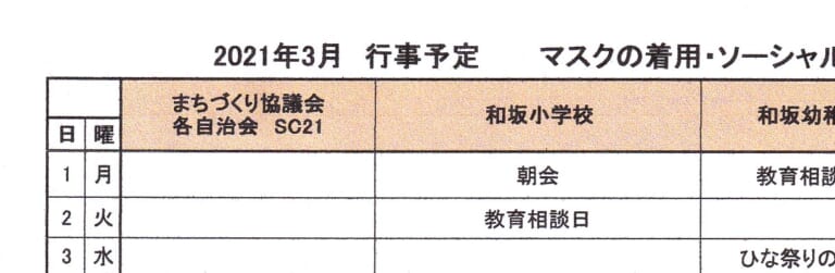 和坂校区まちづくり協議会 関係団体行事日程(2021年3月度)