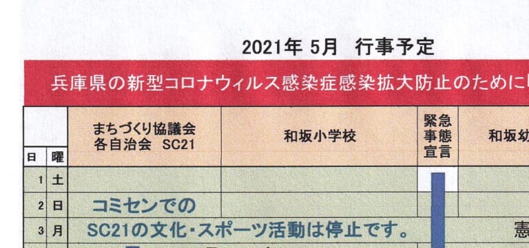 和坂校区まちづくり協議会 関係団体行事日程(2021年5月度)