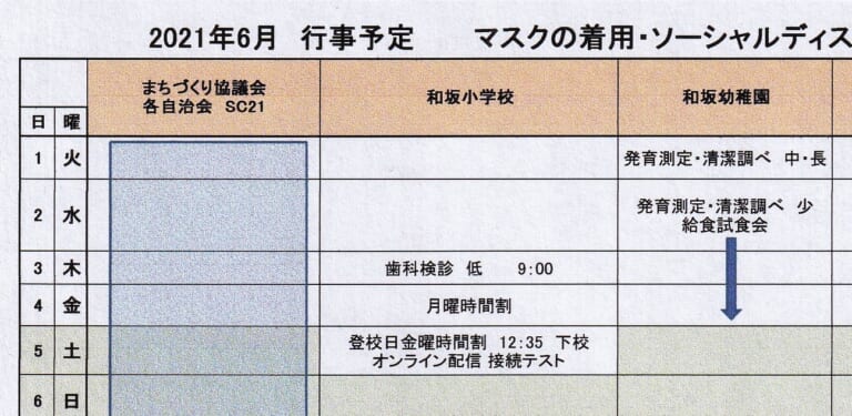 和坂校区まちづくり協議会 関係団体行事日程(2021年6月度)