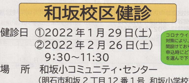 「和坂校区健診」のご案内