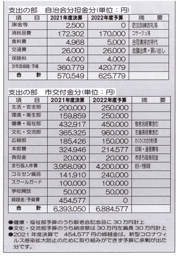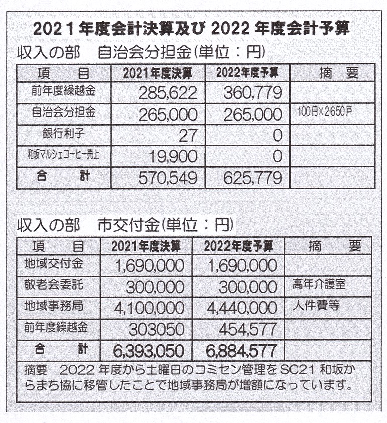 2021年度会計決算 及び 2022年度会計予算